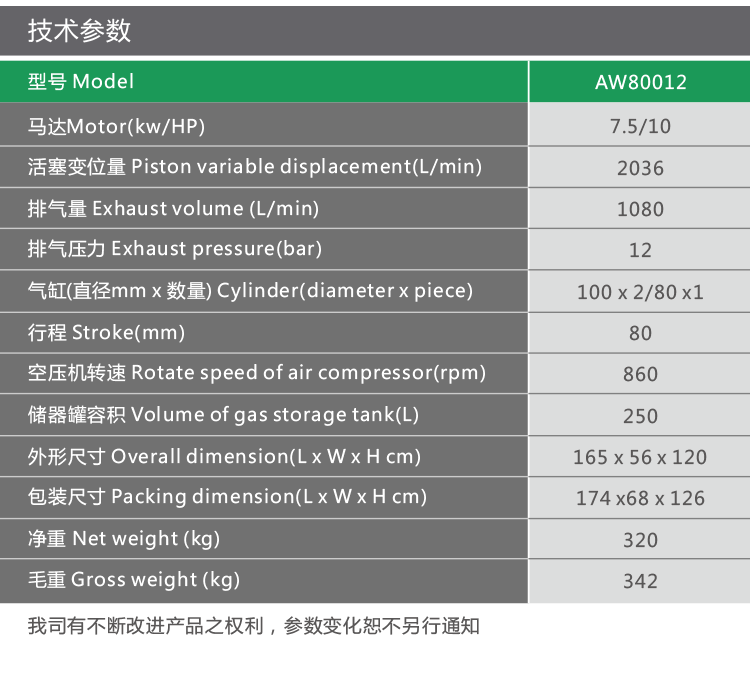 Product name:7.5KW 12bar AW80012 piston air compressor