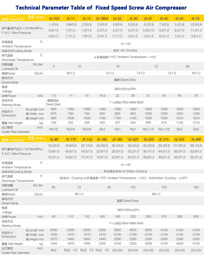 Product name:55KW 75HP JS-55 Screw Air Compressor
