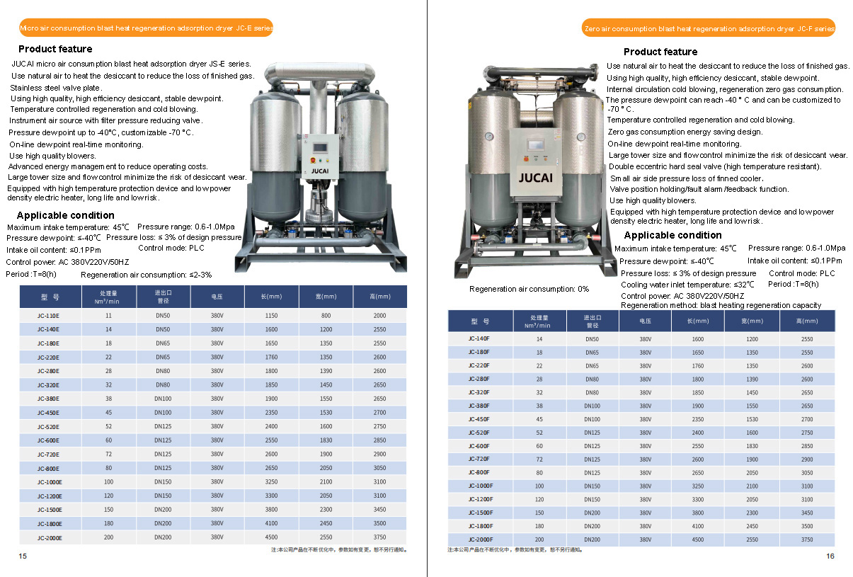 Micro/zero air consumption blast heat regeneration adsorption dryer series