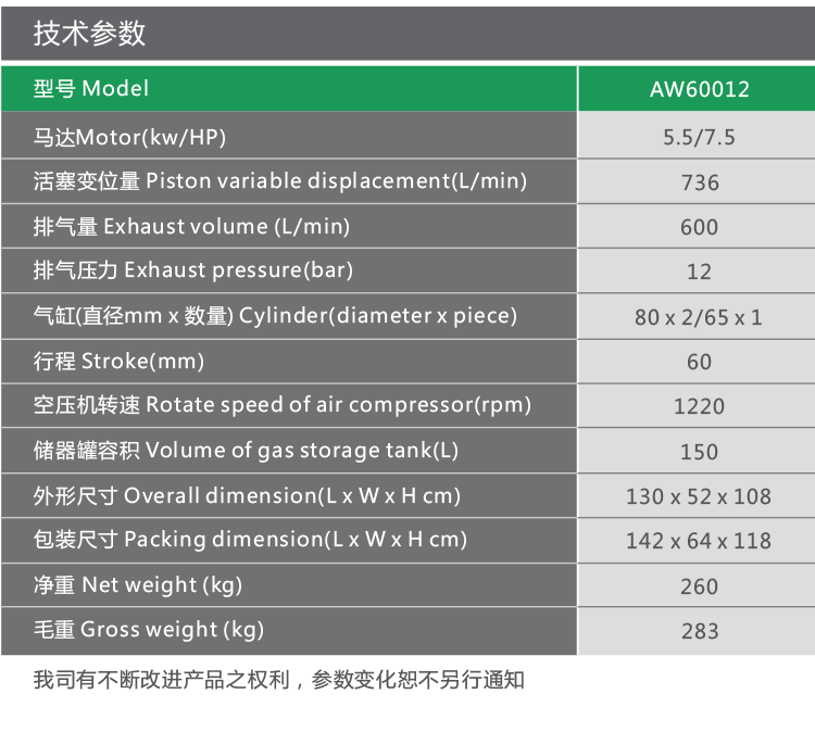 標題:5.5kW/7.5HP 新型節能環保低碳活塞空壓機