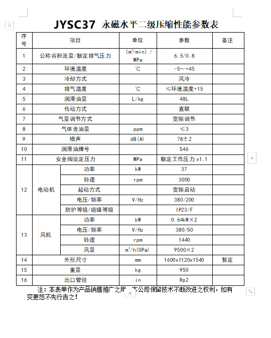 產(chǎn)品名稱:37kW 水平雙級直連永磁變頻空壓機 JYSC37